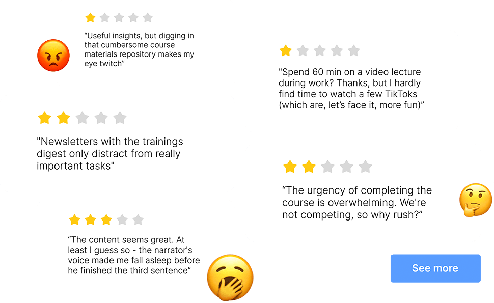 When Oxagile first discussed the matter with a client, the most frequently mentioned words were that their corporate training sessions looked to employees more like “something you can't skip, although you want to.”