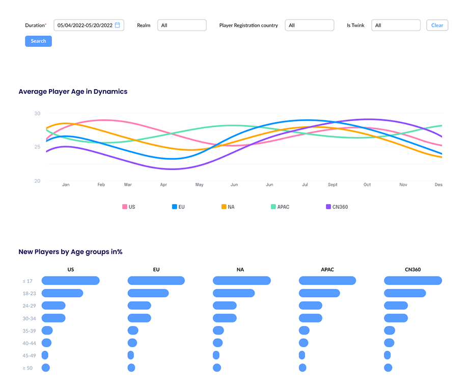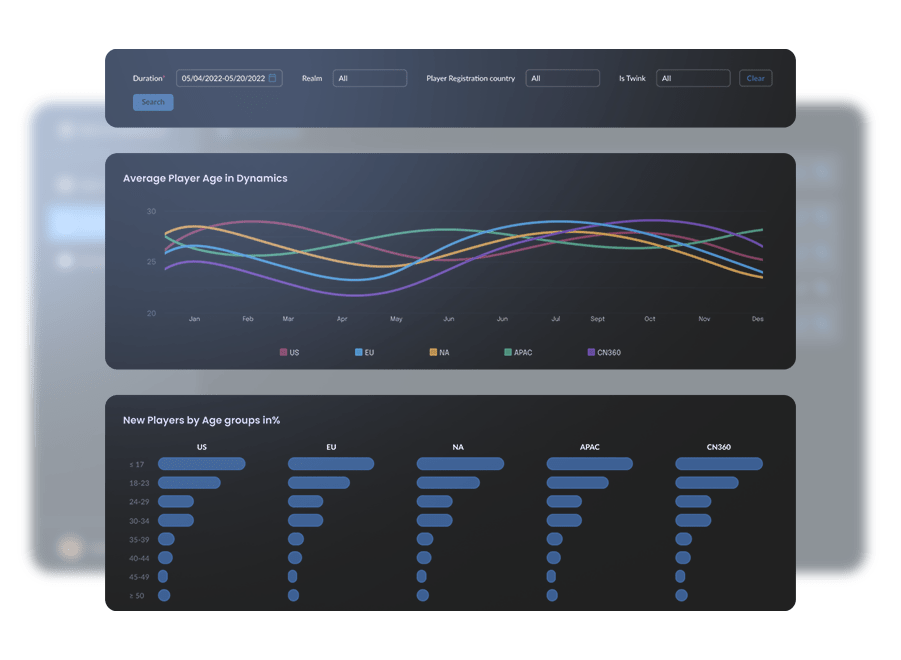 - Segmentations by users and periods such as days, weeks, months (DAU, WAU, MAU)