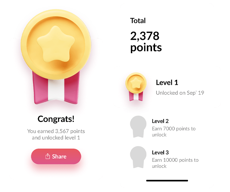 Employees receive rewards and badges for “fastest completion of training”, “highest score during training”, “top 5 best results,” and so on. Accumulating achievements leads to receiving gifts after reaching a certain threshold.