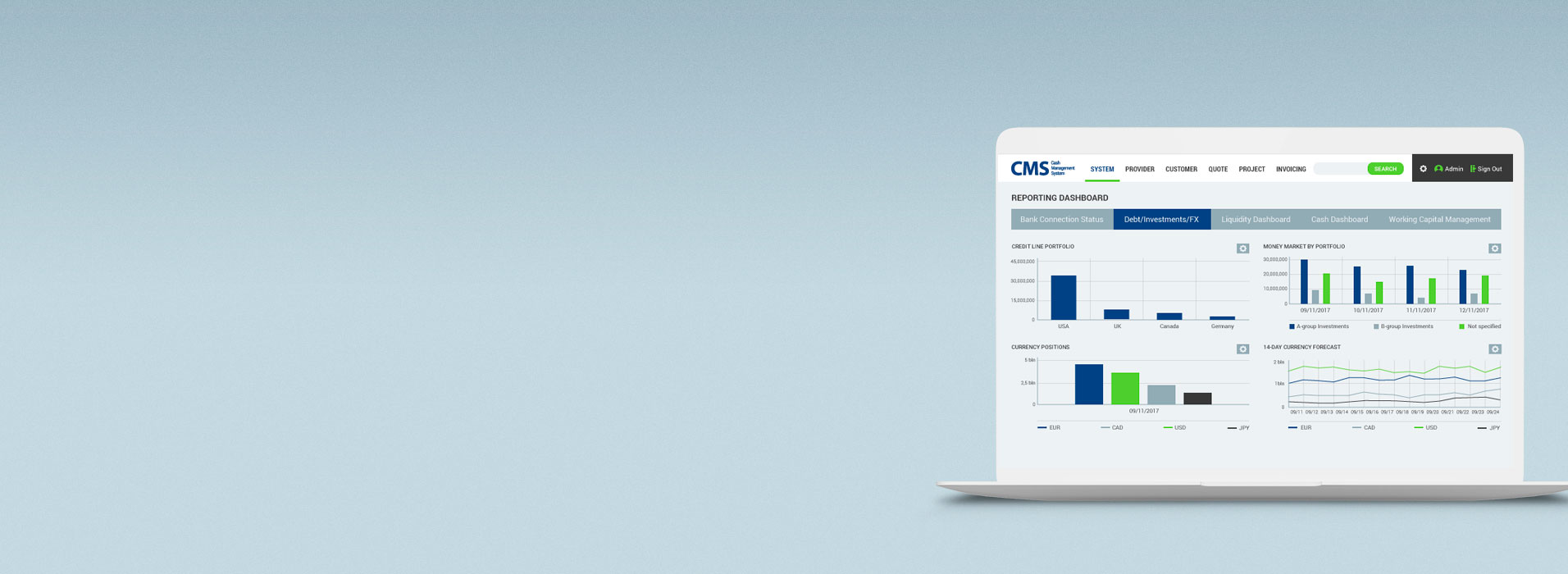 An online SaaS financial flow management system that provides a better way to manage cash funds for enterprise clients. The system includes complex features in regards to payment and foreign exchange transactions, cash management, cash pooling, and netting.